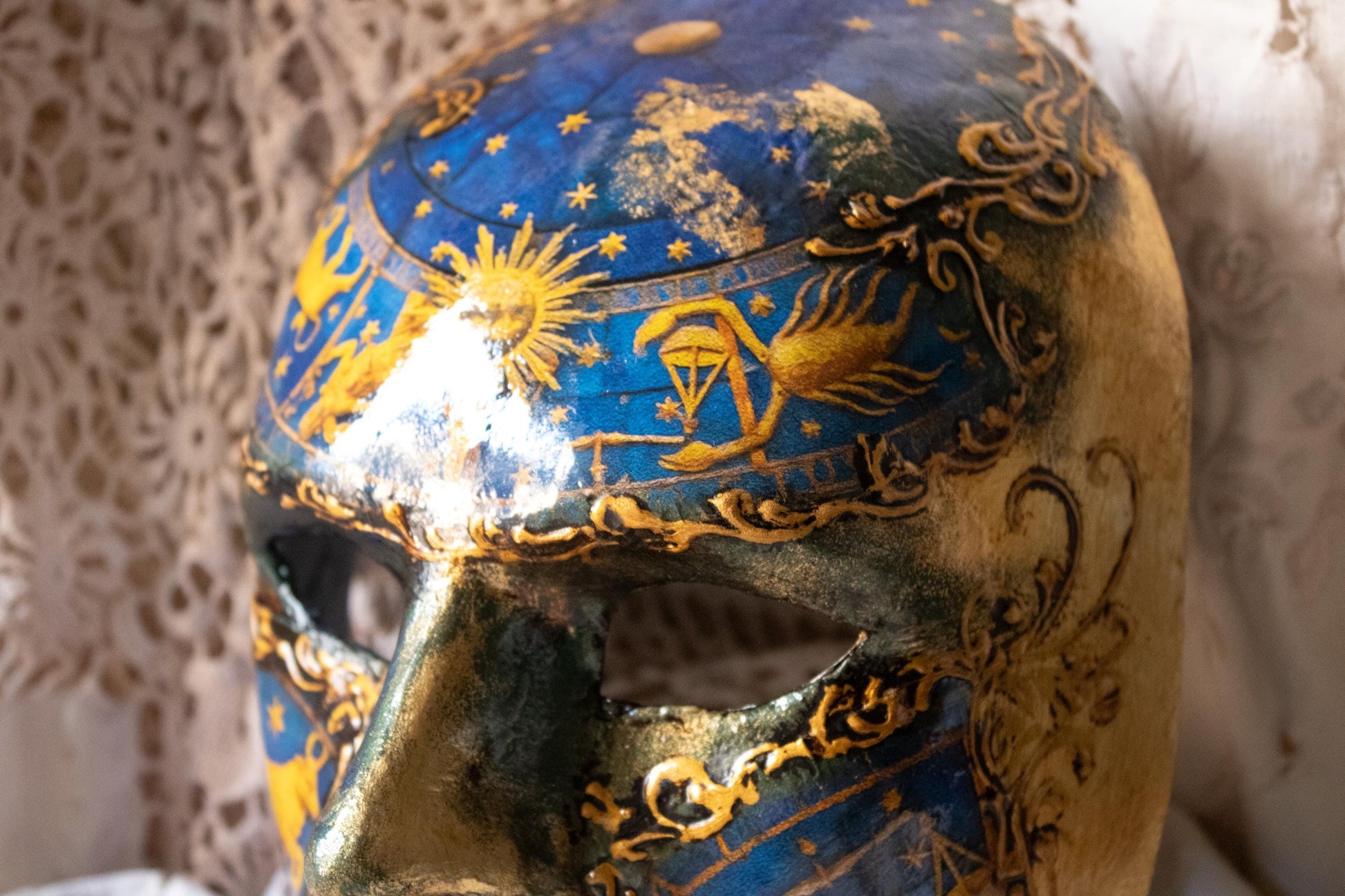 Interamente fatto a mano a Venezia. Utilizzo la tradizionale cartapesta non pressata, colori con pigmenti in polvere, foglia d'oro e d'argento, come insegna la tradizione della cartapesta.