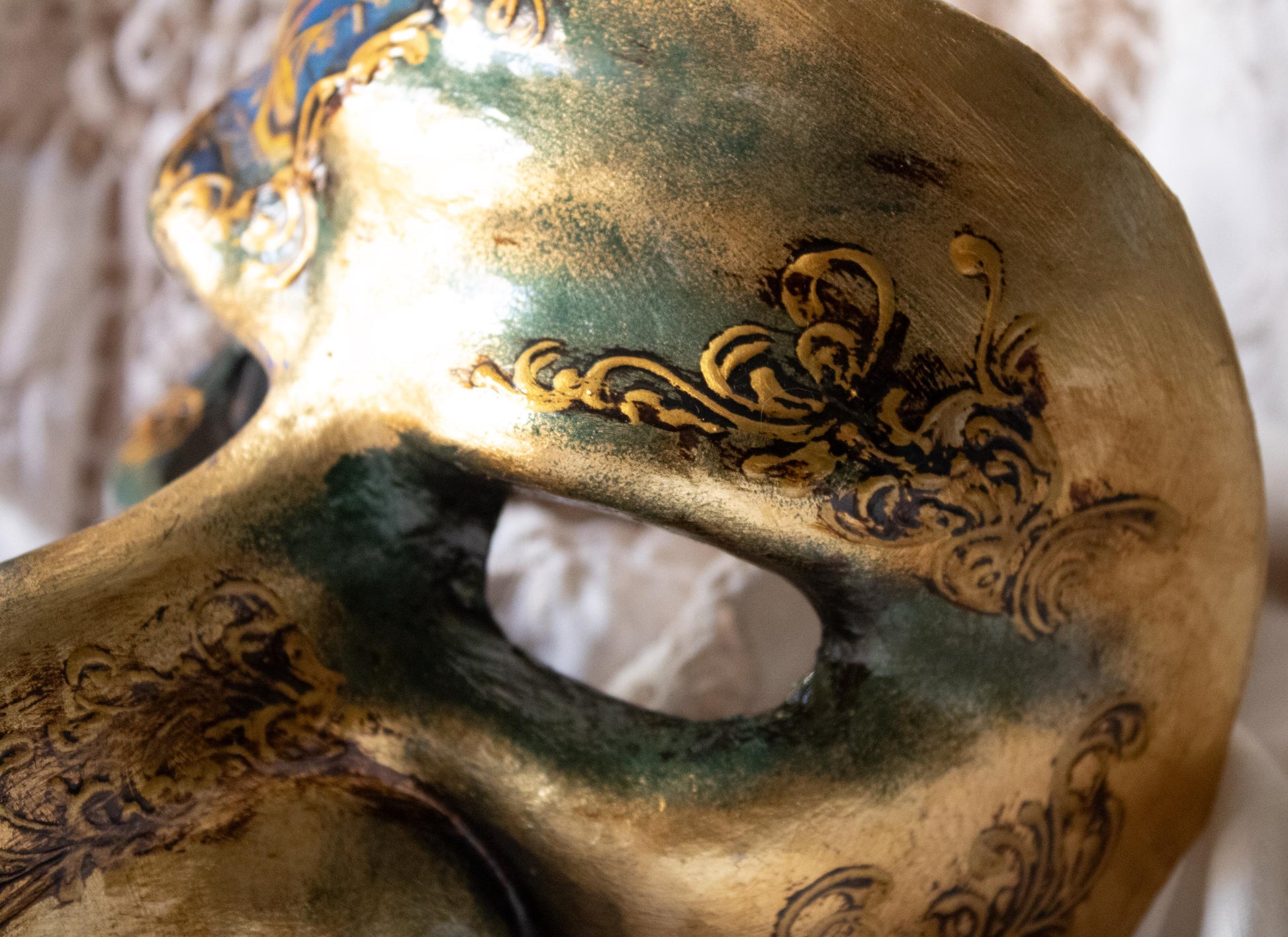 Interamente fatto a mano a Venezia. Utilizzo la tradizionale cartapesta non pressata, colori con pigmenti in polvere, foglia d'oro e d'argento, come insegna la tradizione della cartapesta.